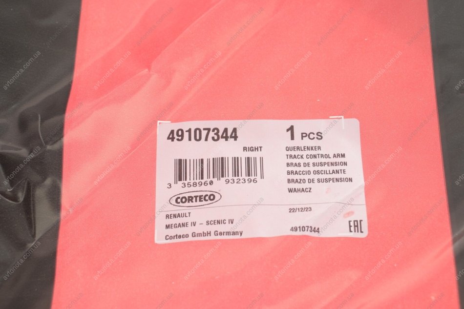 Гарантия обмена и возврата в течении 14 дней при условии сохранения товарного вида. Важіль підвіски corteco 49107344 можете сравнить по оригинальным кросс-номерам.