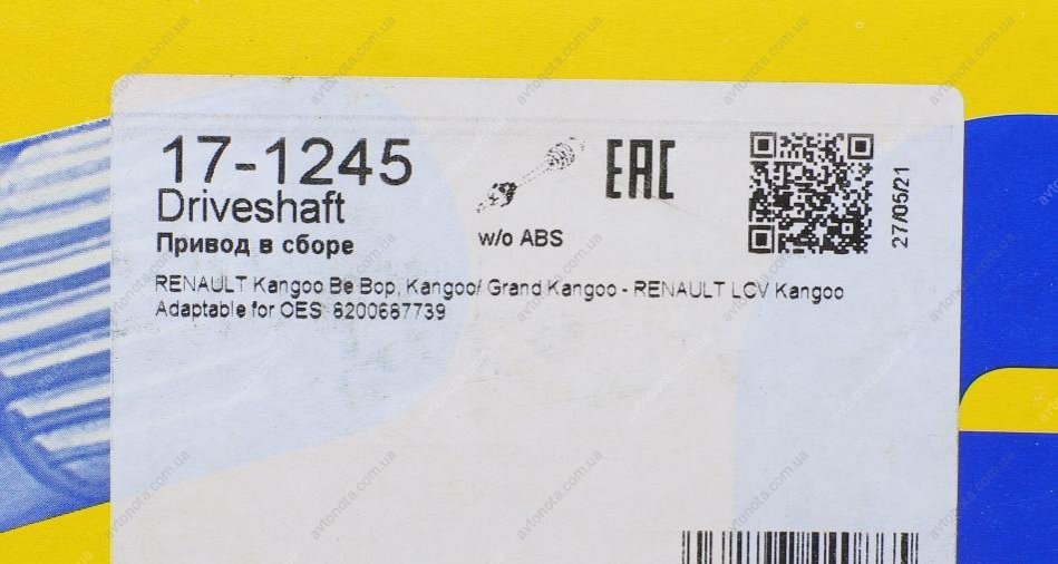 Полуось (передняя) METELLI 17-1245