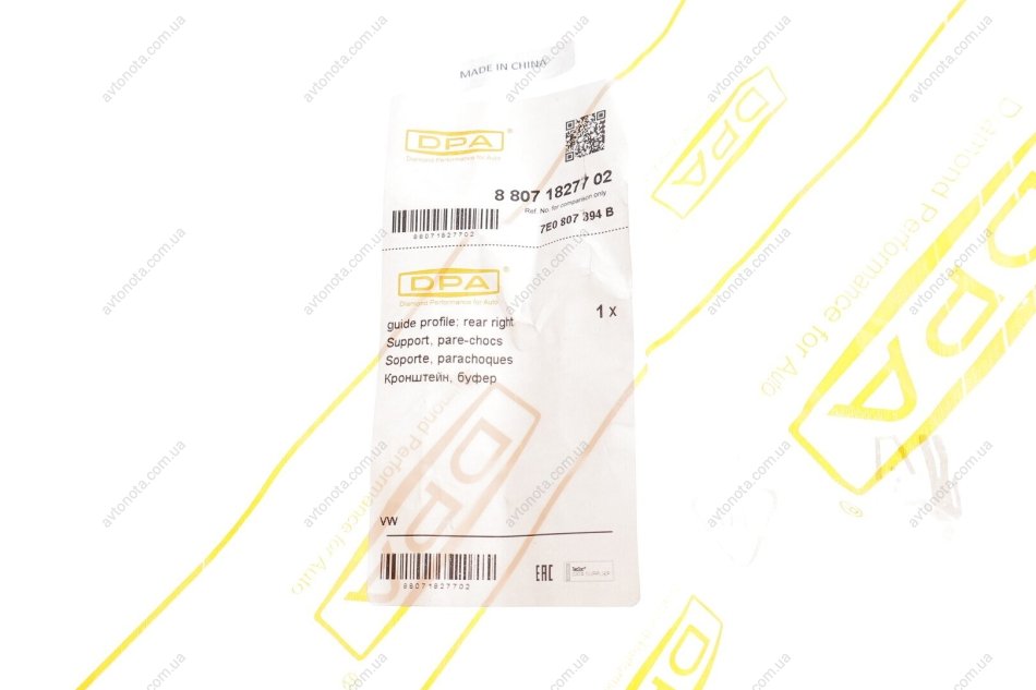 Гарантія обміну та повернення на протязі 14 днів при умові збереження товарного вигляду. Кріплення заднього бампера, ліве dpa 88071827702 можете порівняти по оригинальних кросс-номерах 7E0807394B.